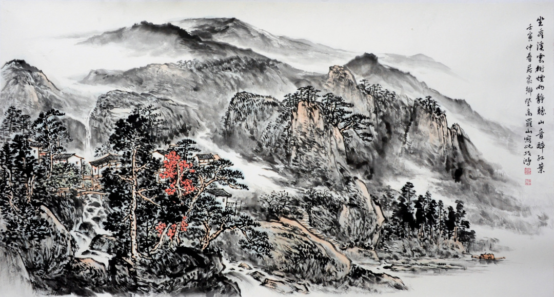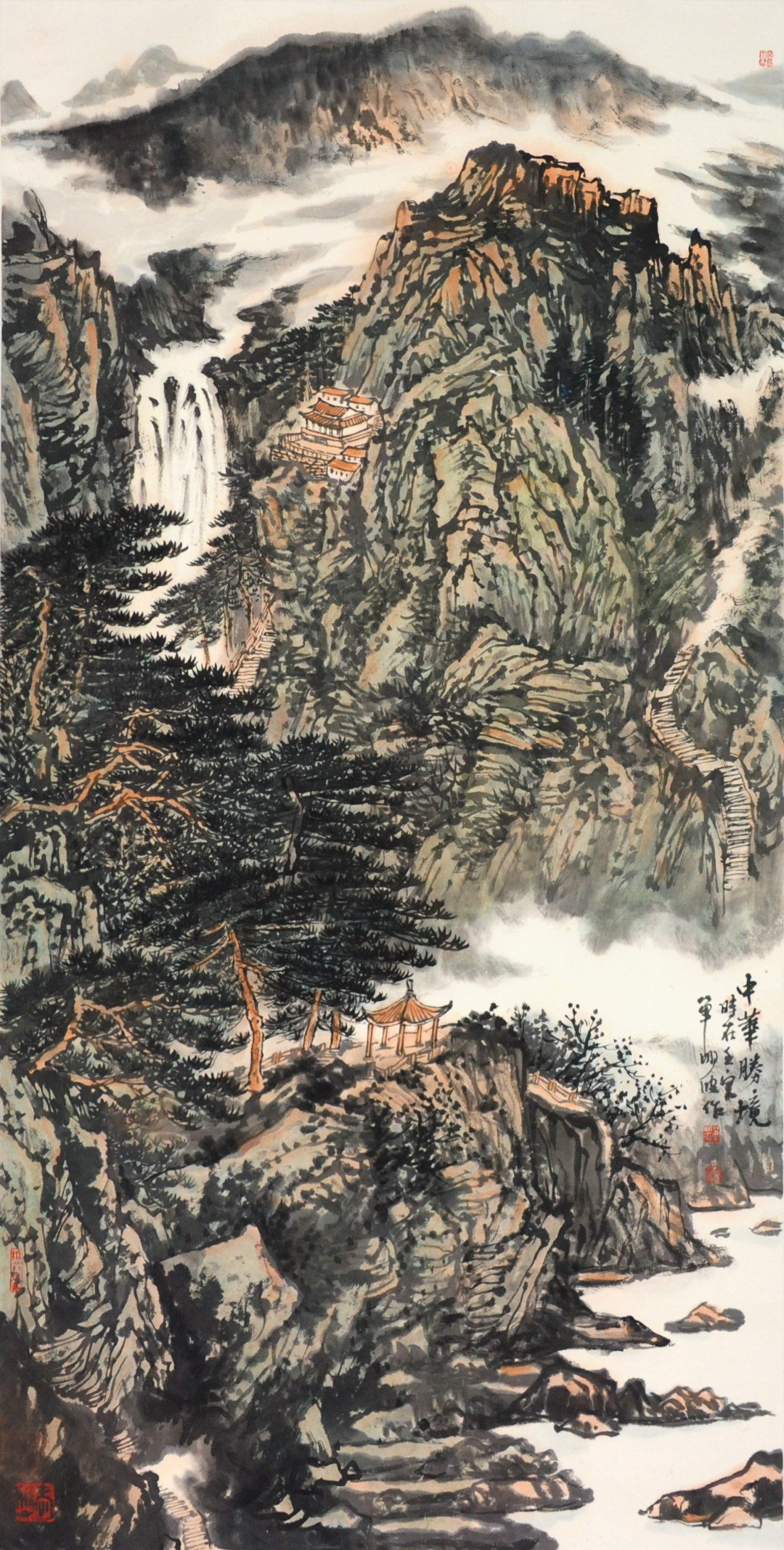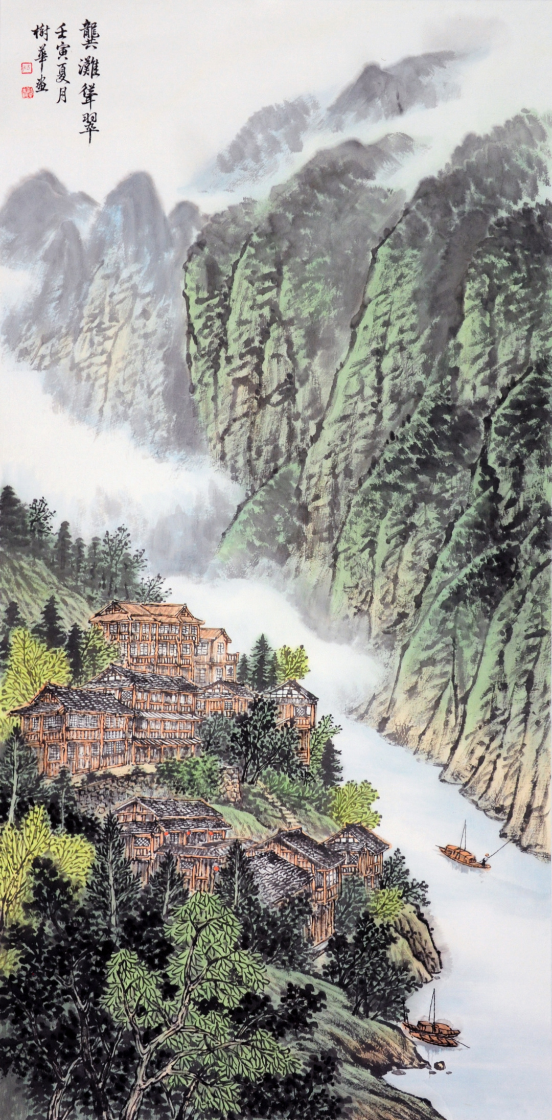 摘要:北京·程华 国画 96cm×180cm? ? 浙江·吴泉棠 国画 《龚滩耸翠》 甘肃·包少茂?国画 《查济风情》 69cm×138cm 138cm×69cm 《楼台屹立画屏中》 《云雾山中》 仇传