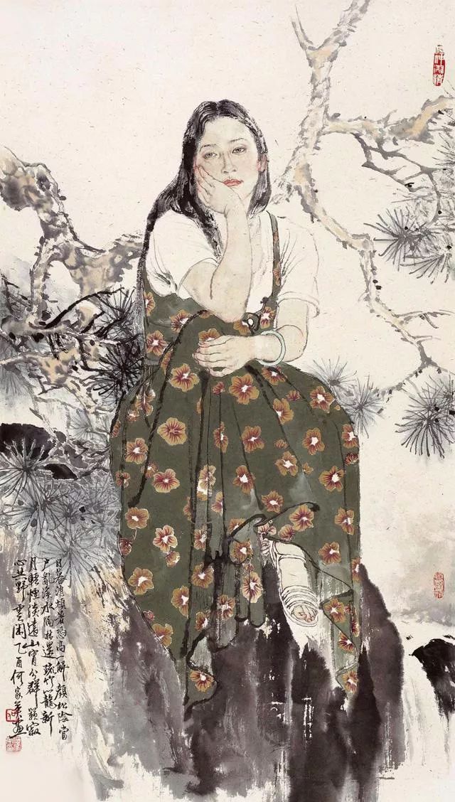何家英笔下的女性气质相仿,无论身份如何,总与世俗隔着点距离,带着些诗意。